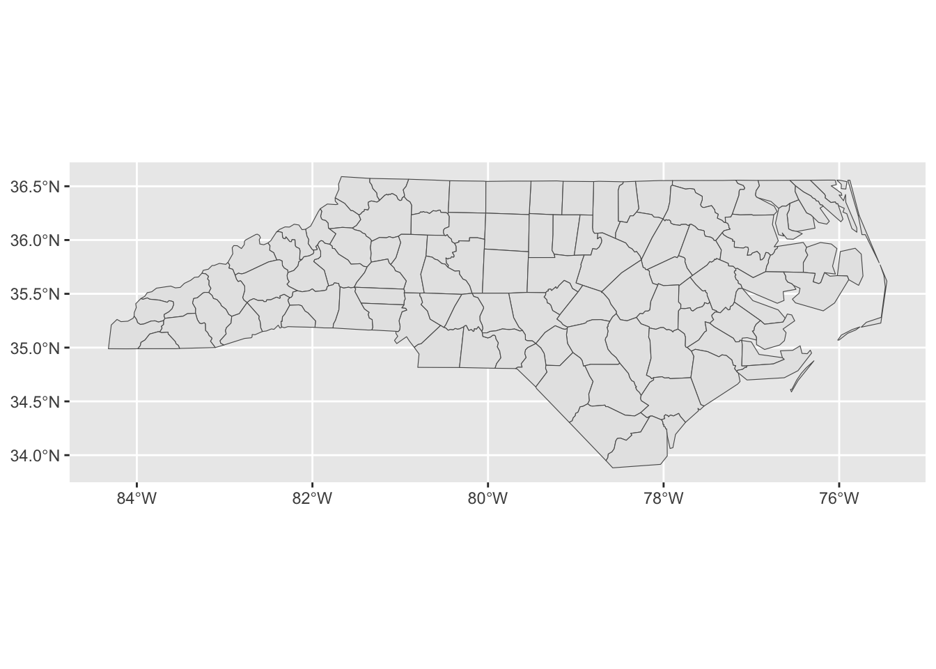 ggplot() + geom_sf(data = nc, aes(geometry = geometry))